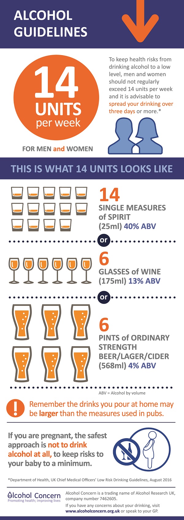 How much should I be drinking? Click here for more information on the new drinking guidelines. For an at a glance summary, check out this handy infographic.